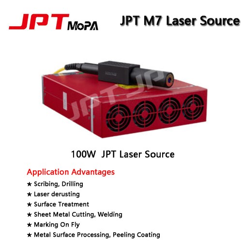 JPT M7 series high power pulsed fiber lasers make use of master oscillator power amplifier (MOPA) configuration, and show excellent laser performance as well as high level of temporal pulse shaping controllability. As compared to the Q-switching technology, the pulse repetition frequency (PRF) and pulse width can be controlled independently in MOPA configuration, through adjusting different combination of the above parameters, the peak power of laser can be well maintained. And enable JPT laser suitable for more material processing which Q-switch limited. The higher output power makes its advantages especially in high speed marking applications.