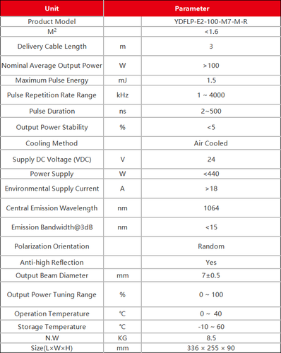 JPT M7 series high power pulsed fiber lasers make use of master oscillator power amplifier (MOPA) configuration, and show excellent laser performance as well as high level of temporal pulse shaping controllability. As compared to the Q-switching technology, the pulse repetition frequency (PRF) and pulse width can be controlled independently in MOPA configuration, through adjusting different combination of the above parameters, the peak power of laser can be well maintained. And enable JPT laser suitable for more material processing which Q-switch limited. The higher output power makes its advantages especially in high speed marking applications.