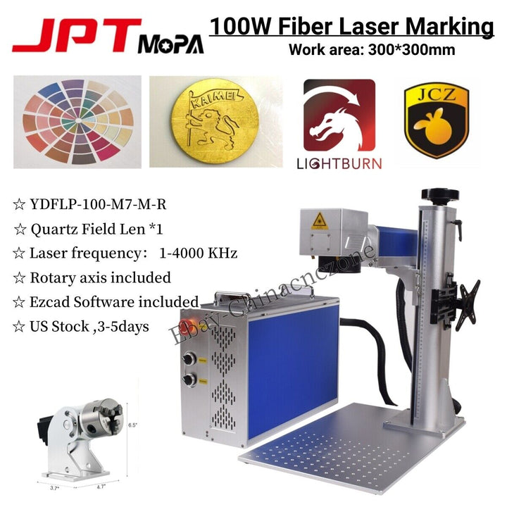 100W JPT M7 Mopa Fiber Laser Marking Cutting Machine Quartz Lens BJJCZ Rotary US