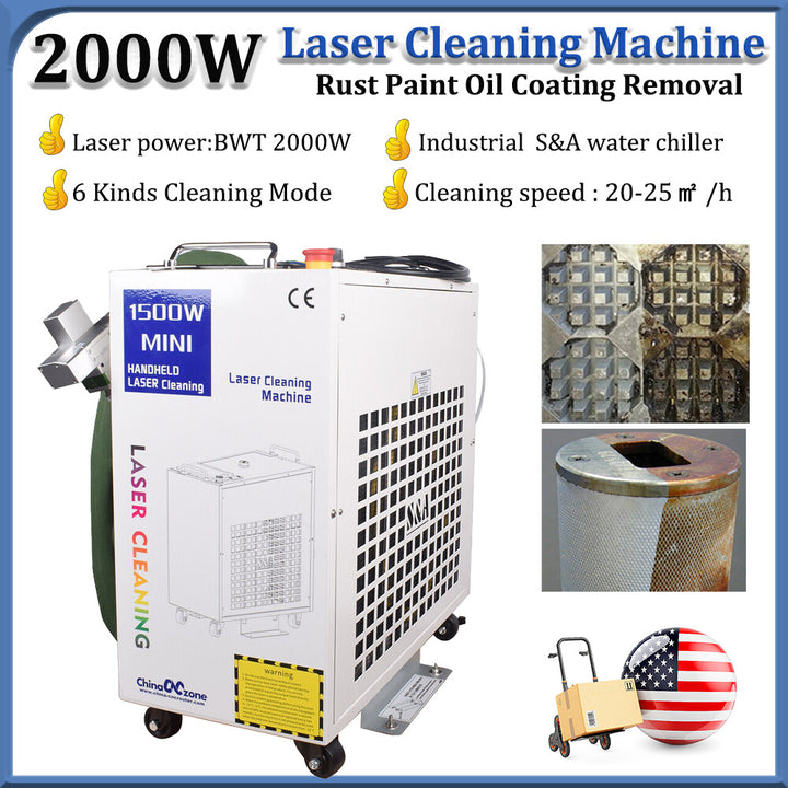 2000W Handheld Fiber Laser Cleaning Machine Laser Remove Rust/Oil/Paint US 30m²/