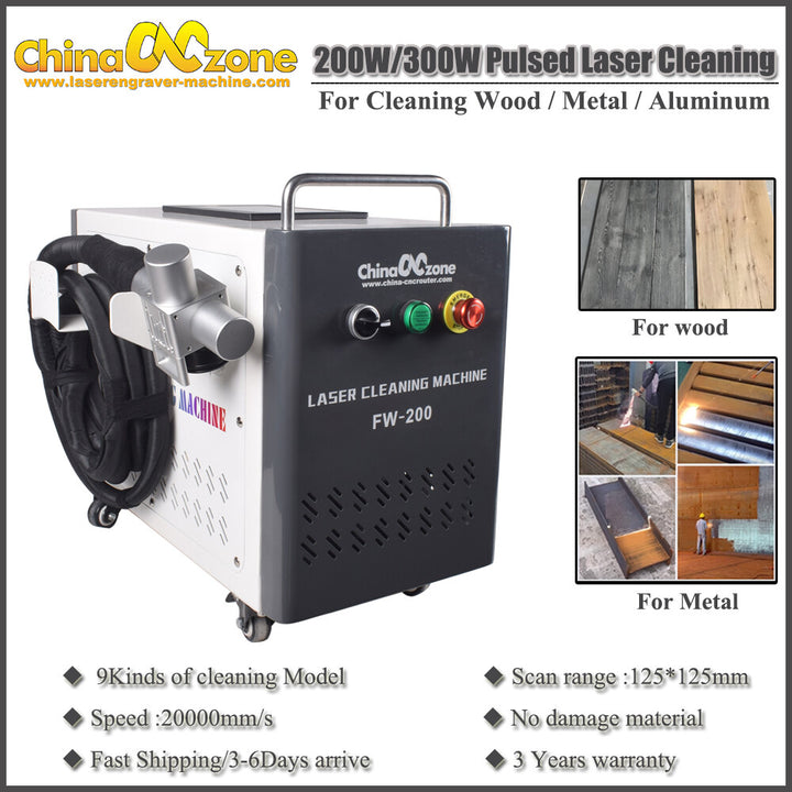 200W/300W Pulsed Laser Cleaning Machine For Wood/Metal Rust/Oil/Paint Removal