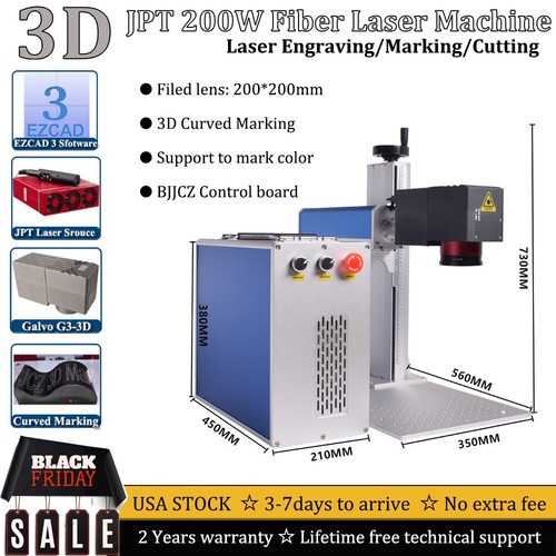200W 3D JPT MOPA Fiber Laser Marking Machine EZCAD3 Relief/Deep/Curved Marking