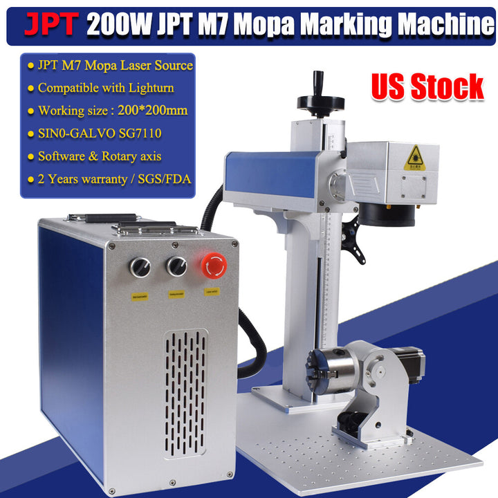 200W JPT M7 Mopa 200mm Fiber Laser Color Marking Metal Marking Machine Lightburn