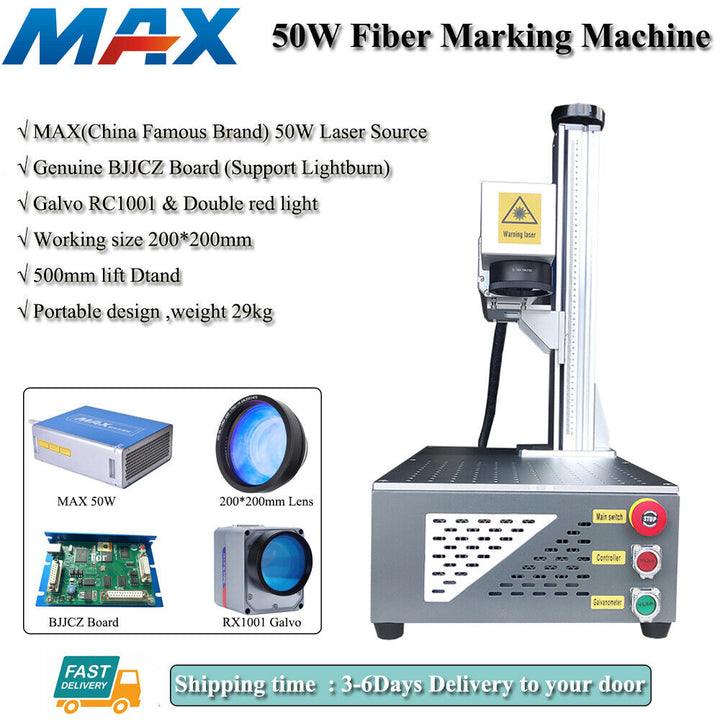 20W/30W/50W 200mm MAX Fiber Laser Marking Machine RC1001 Galvo Double Red Dot