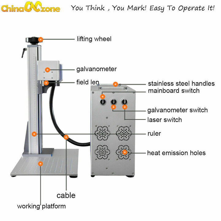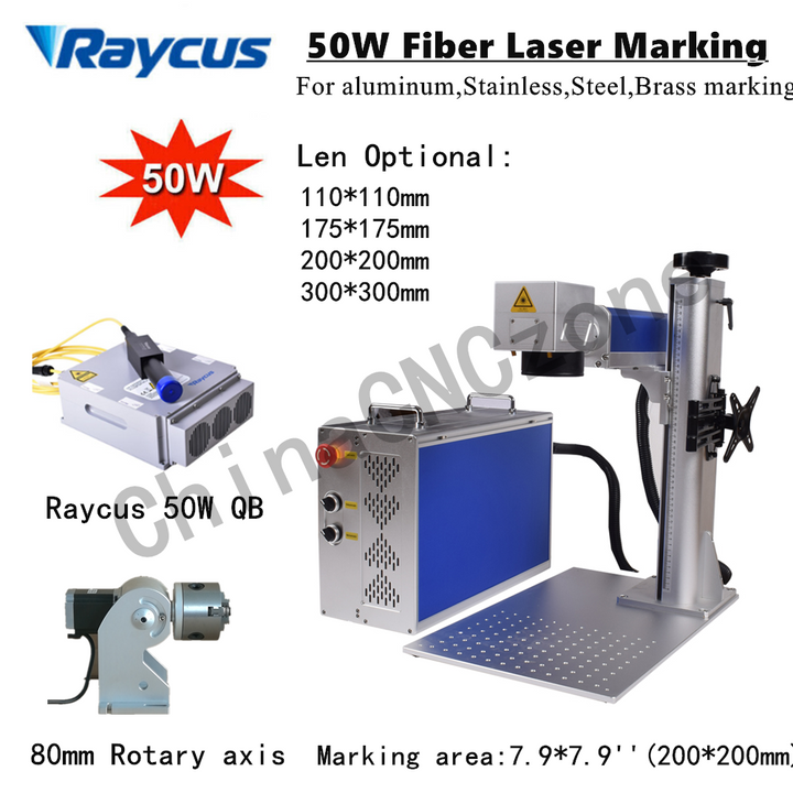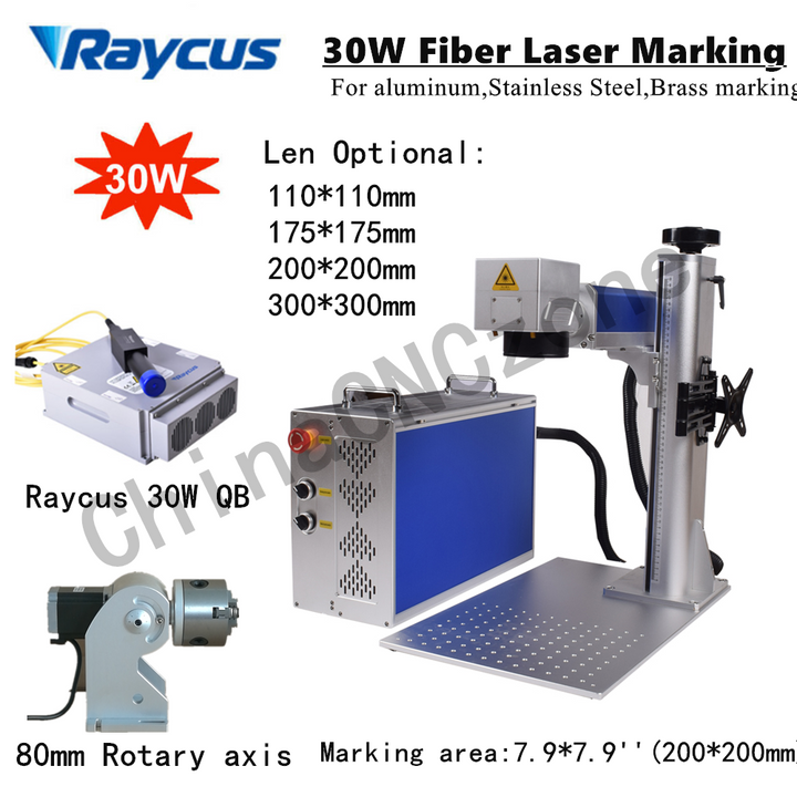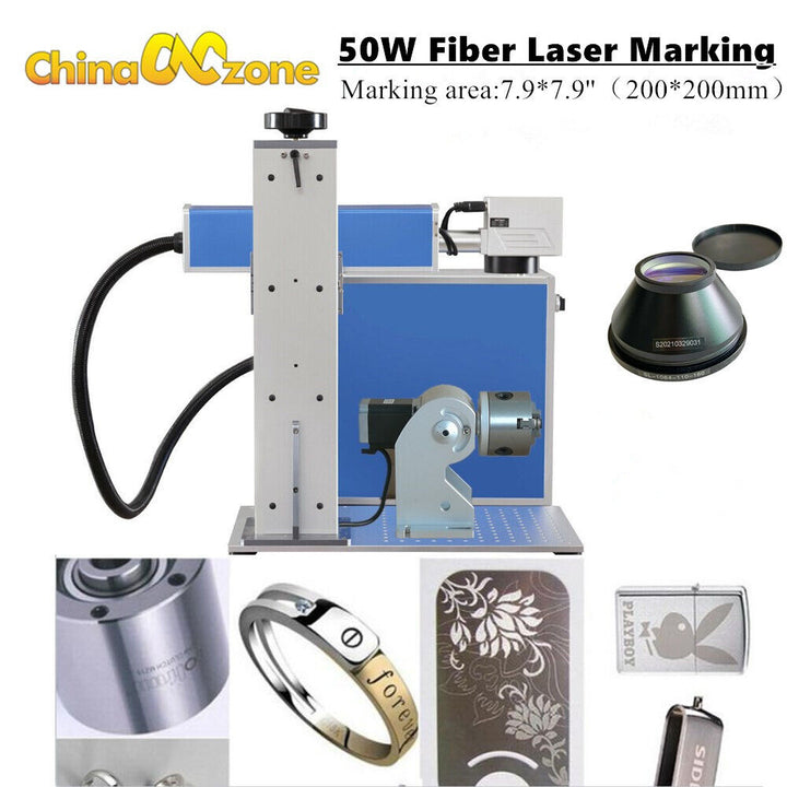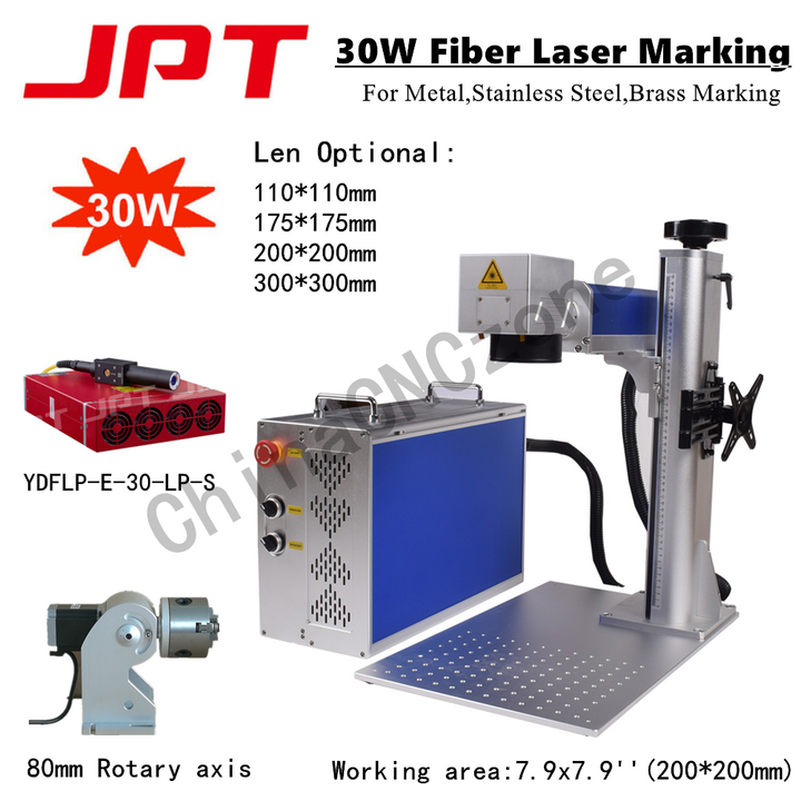 30W/50W JPT LP/Raycus Fiber Laser Marking Machine 80mm Rotary Axis 7.9*7.9''USA