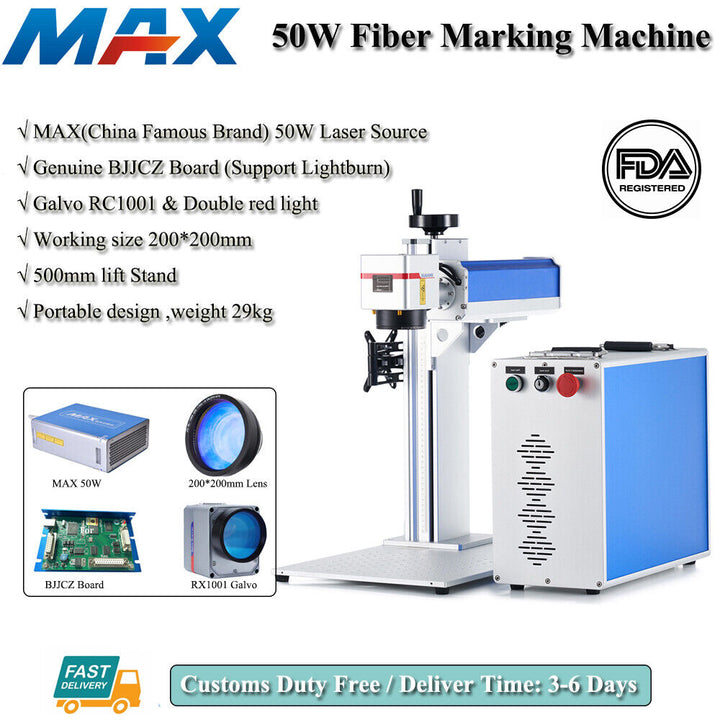 30W/50W MAX Fiber Laser Marking Machine Galvo Double RedDot Metal Engraver US