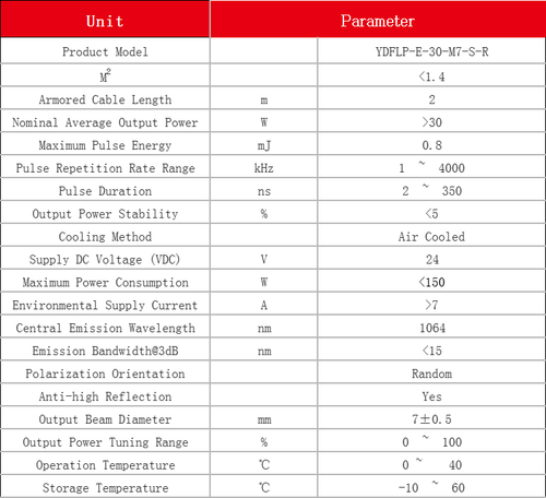 JPT M7 series high power pulsed fiber lasers make use of master oscillator power amplifier (MOPA) configuration, and show excellent laser performance as well as high level of temporal pulse shaping controllability. As compared to the Q-switching technology, the pulse repetition frequency (PRF) and pulse width can be controlled independently in MOPA configuration, through adjusting different combination of the above parameters, the peak power of laser can be well maintained. And enable JPT laser suitable for more material processing which Q-switch limited. The higher output power makes its advantages especially in high speed marking applications