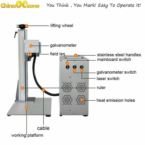 Fiber laser marking machine mainly consists of four parts: fiber laser, galvanometer scanning system, computer control system and the worktable.