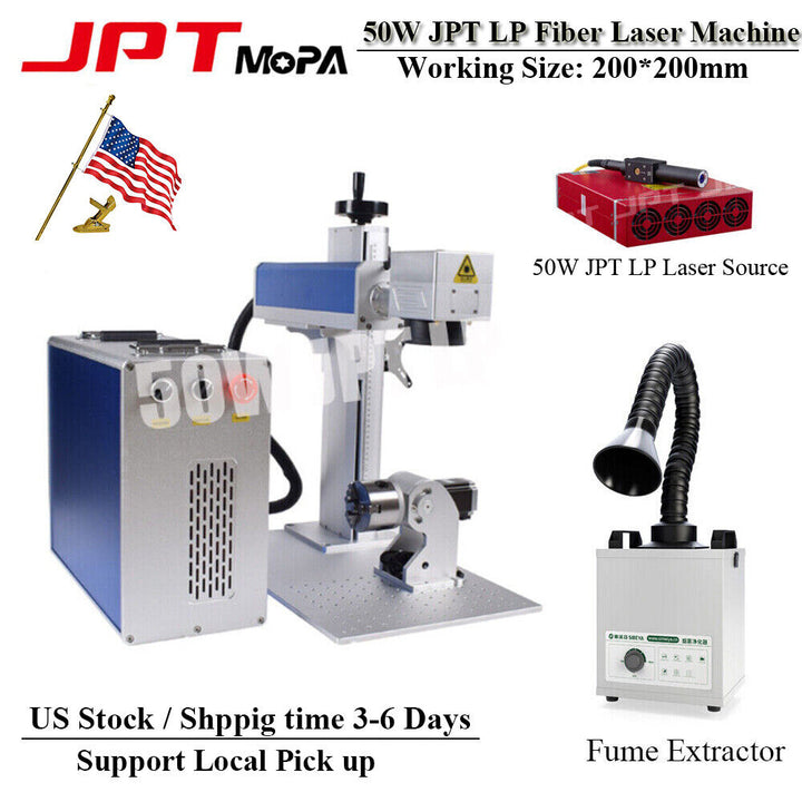 50W JPT LP 200*200mm Fiber Laser Marking Rotation Machine CA US & Fume Extractor