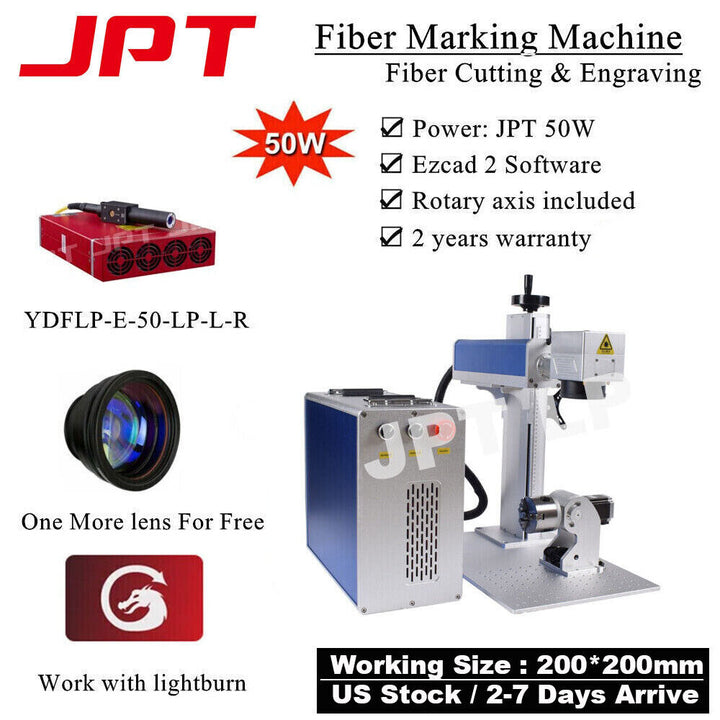 50W JPT LP Fiber Laser Marking Machine 200*200mm Rotation For Metal US Stock