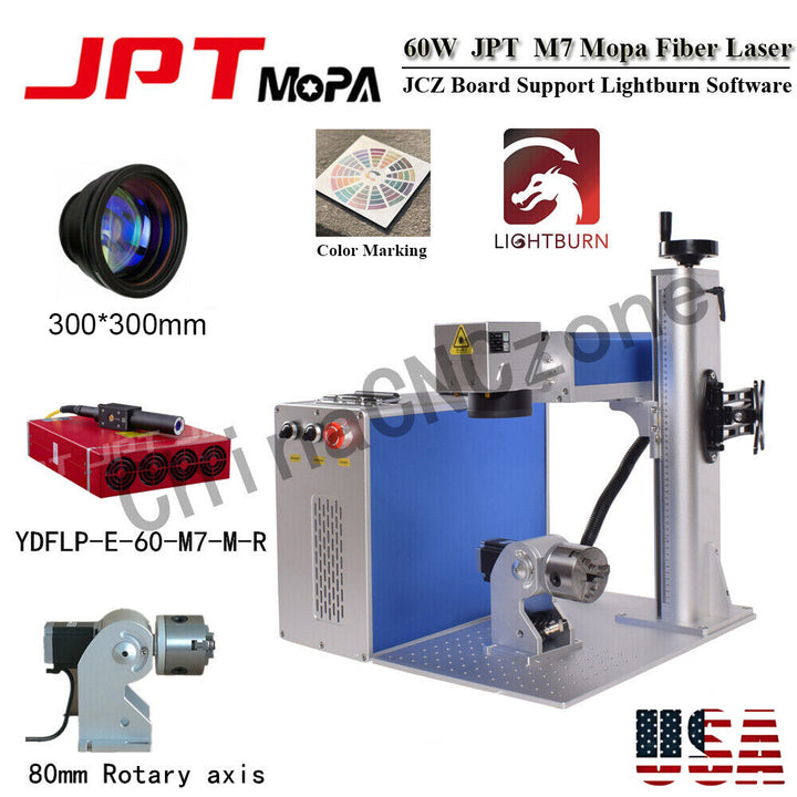 60W JPT M7 Mopa 300*300mm Fiber Laser Marking Machine Color Marking【US Ship】