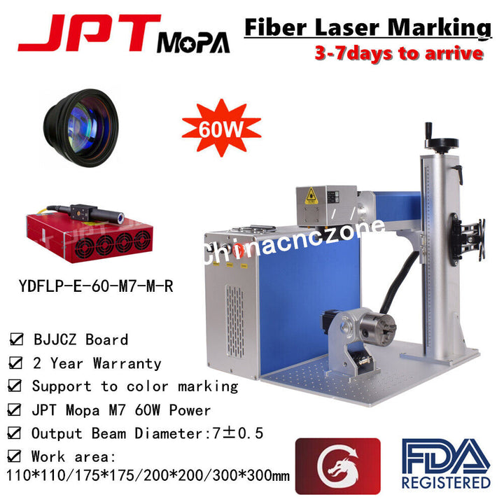 60W JPT M7 Mopa 300*300mm Fiber Laser Marking Rotary axis Ezcad For Gold US Ship