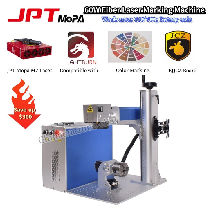 60W JPT M7 Mopa Fiber Laser Marking Rotary axis Ezcad Double Len Color Mark US