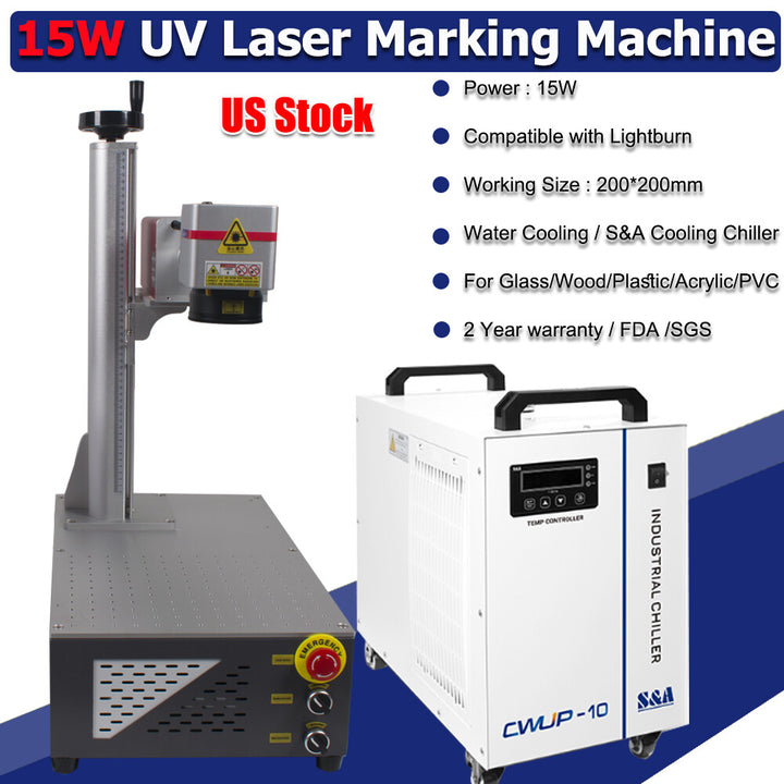 CRS 15W UV Laser Marking Machine For Glass Metal Wood PVC & S&A CWUL 10 Chiller