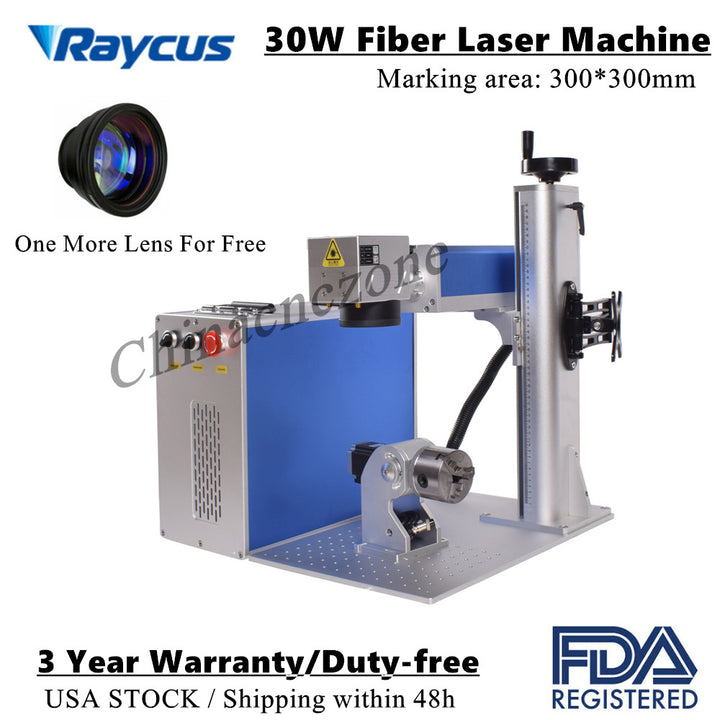 IN US Raycus 30W Fiber Laser Marking Machine Rotary Axis For Metal Steel Marking