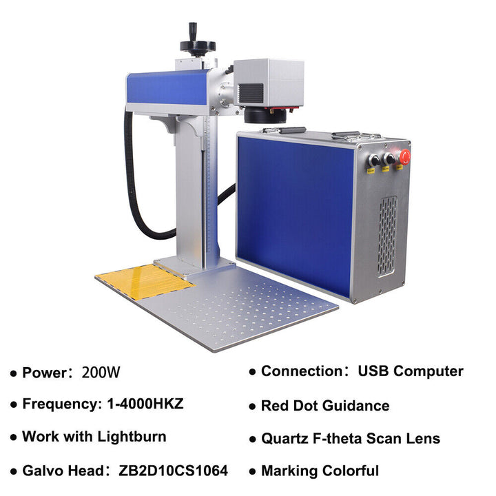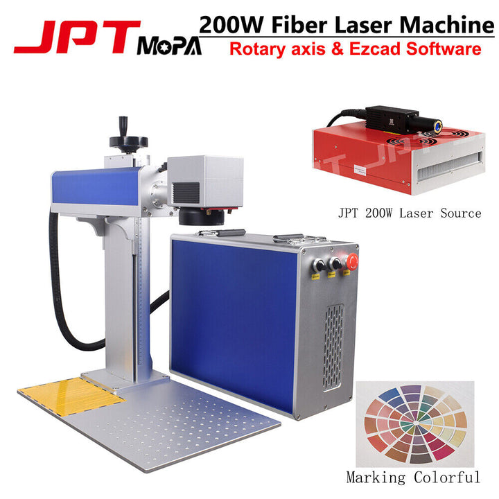 JPT 200W Mopa Fiber Laser Marking Machine Rotary Quartz Len Lightburn 200*200mm