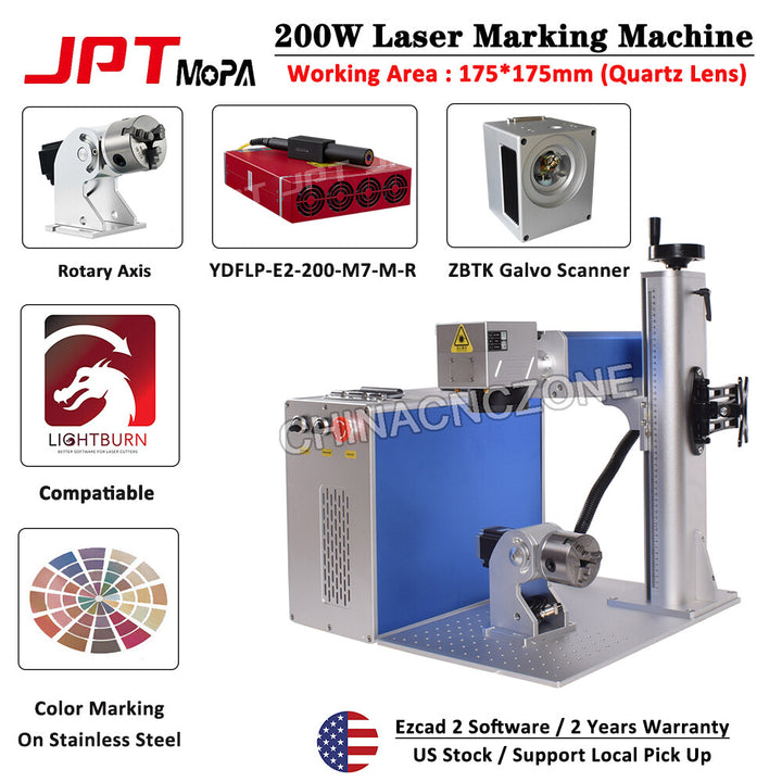JPT 200W Mopa M7 Fiber Laser Metal Marking Cutting Machine Ezcad Rotary Axis US
