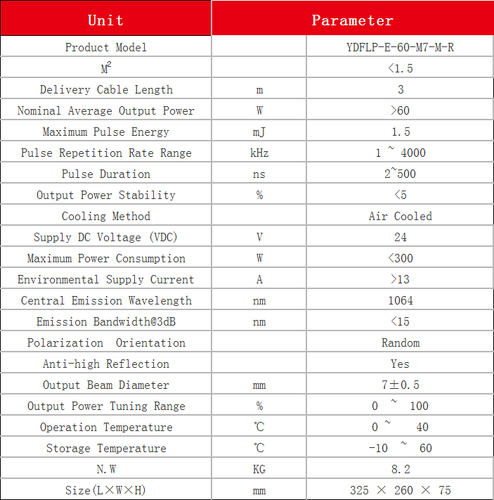 JPT M7 series high power pulsed fiber lasers make use of master oscillator power amplifier (MOPA) configuration, and show excellent laser performance as well as high level of temporal pulse shaping controllability. As compared to the Q-switching technology, the pulse repetition frequency (PRF) and pulse width can be controlled independently in MOPA configuration, through adjusting different combination of the above parameters, the peak power of laser can be well maintained. And enable JPT laser suitable for more material processing which Q-switch limited. The higher output power makes its advantages especially in high speed marking applications.