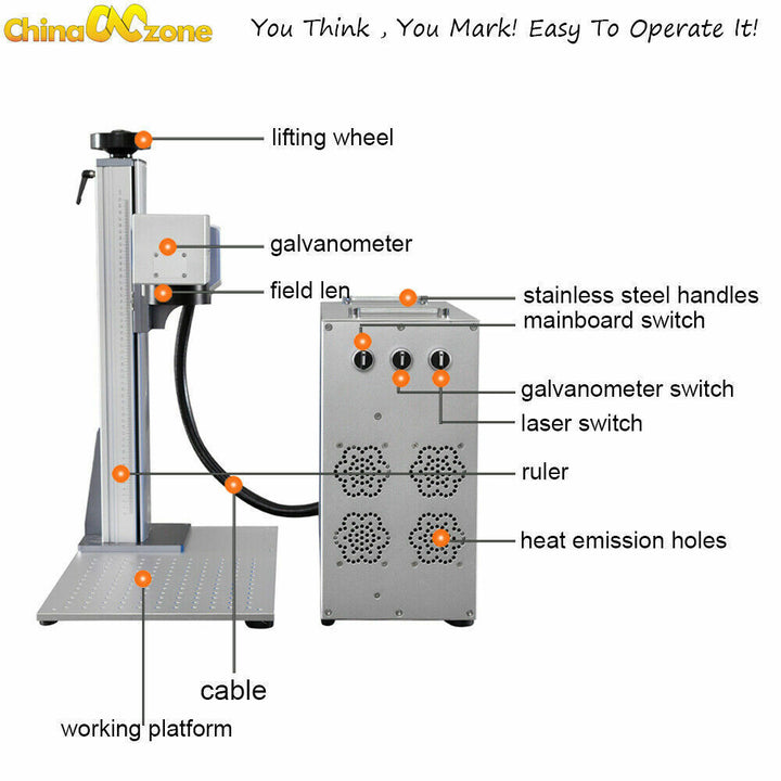 JPT LP 30W/50W Fiber Laser Marking Machine 80mm Rotary Axis 175mm/200mm USA