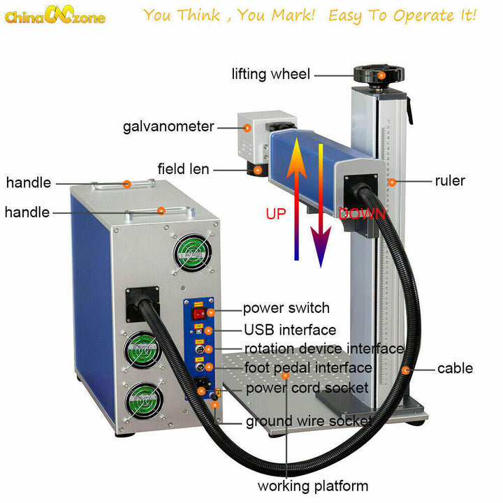 Portable 30W Fiber Laser Marking Machine For Metal Steel Split &Rotary Axis US