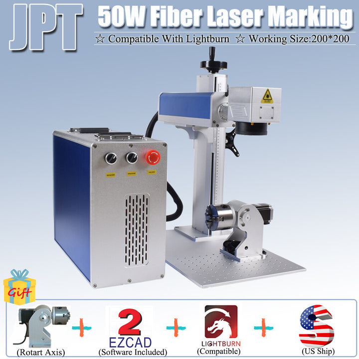 【US Ship】50W JPT Fiber Laser Marking Machine 200*200mm Rotation Fit Lightburn