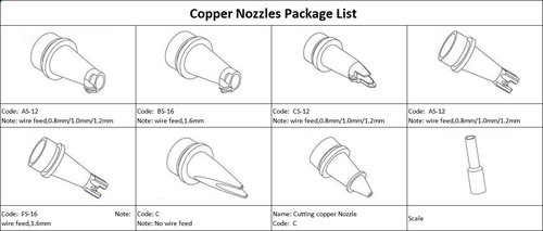 AS-12, BS-16, CS-12, DS-12, ES-12, FS-16, Model C, Cutting nozzle, 70mm Scale Tube, 8 PCS Nozzle(No Scale Tube), 8 PCS Nozzle + 1 Scale tube |